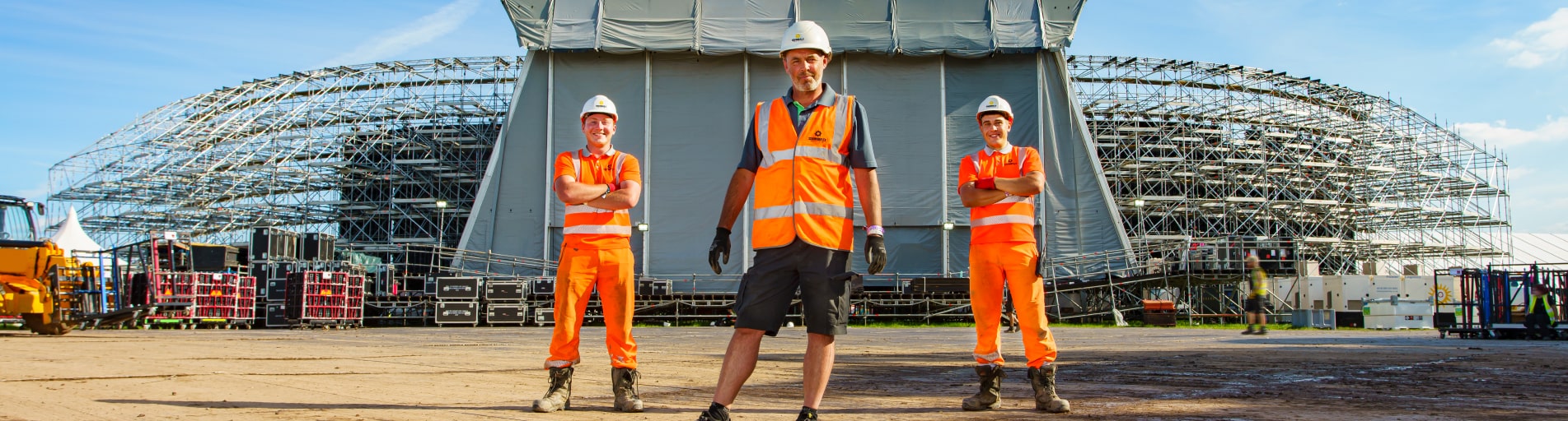 Next, you need plant, and lots of it. Literally, tonnes of equipment must be moved around the site, while a range of access machines are required to build and rig up structures like the infamous Steel Yard, the mind-blowing Arc Stage, and the Warehouse, big enough to house several aircraft!